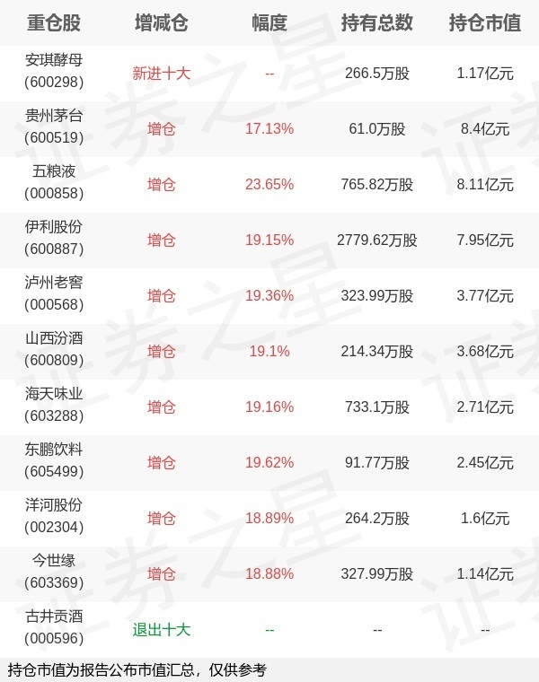 证券之星消息,1月22日华夏基金旗下徐猛管理的华夏中证细分食品饮料产业主题交易型开放式指数基金公布年报,近1年净值增长率-4.68%。与上一季度相比,该基金前十大重仓股新增安琪酵母;并对贵州茅台增仓8.92万股,为该基金第一大重仓股;古井贡酒等退出前十大重仓股;详细数据如下: