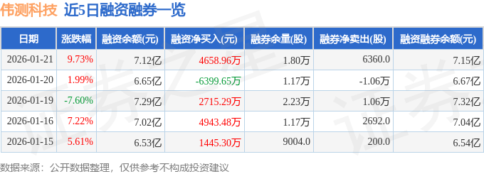 伟测科技融资融券信息显示,融资方面,当日融资买入2.09亿元,融资偿还1.62亿元,融资净买入4658.96万元。融券方面,融券卖出6360.0股,融券偿还0.0股,融券余量1.8万股,融券余额263.08万元。融资融券余额7.15亿元。