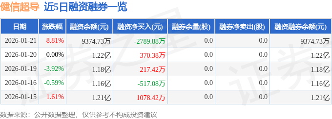 近5日融资融券数据一览见下表: