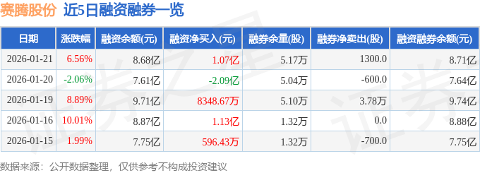 证券之星消息,截至2026年1月21日收盘,赛腾股份(603283)报收于55.84元,上涨6.56%,换手率13.92%,成交量37.74万手,成交额20.76亿元。