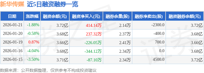 证券之星消息,截至2026年1月21日收盘,新华传媒(600825)报收于6.77元,下跌1.88%,换手率1.93%,成交量20.18万手,成交额1.38亿元。