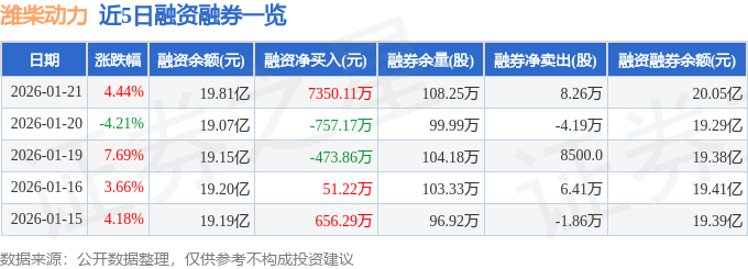 证券之星消息,截至2026年1月21日收盘,潍柴动力(000338)报收于22.56元,上涨4.44%,换手率3.77%,成交量188.56万手,成交额41.78亿元。
