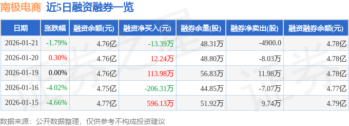 证券之星消息,截至2026年1月21日收盘,南极电商(002127)报收于3.29元,下跌1.79%,换手率2.71%,成交量53.99万手,成交额1.79亿元。