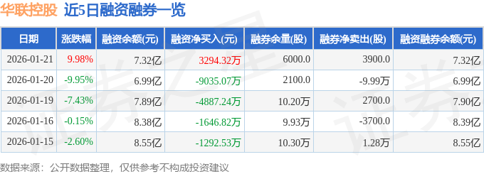 证券之星消息,截至2026年1月21日收盘,华联控股(000036)报收于6.17元,上涨9.98%,涨停,换手率7.07%,成交量99.13万手,成交额5.91亿元。