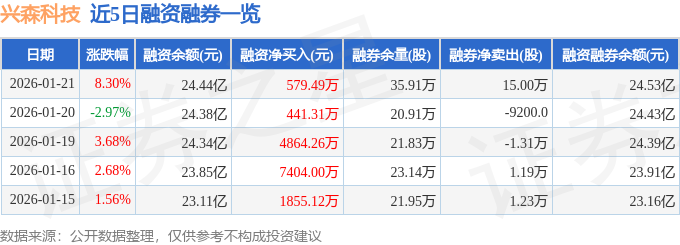 兴森科技融资融券信息显示,融资方面,当日融资买入5.9亿元,融资偿还5.85亿元,融资净买入579.49万元,连续3日净买入累计5885.06万元。融券方面,融券卖出15.11万股,融券偿还1100.0股,融券余量35.91万股,融券余额913.91万元。融资融券余额24.53亿元。