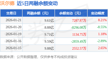 证券之星消息,1月21日,沃尔德(688028)融资买入1.32亿元,融资偿还5934.89万元,融资净买入7287.87万元,融资余额9.61亿元,近20个交易日中有12个交易日出现融资净买入。
