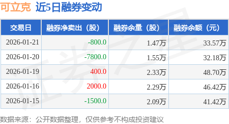 融券方面,当日融券卖出0.0股,融券偿还800.0股,融券净买入800.0股,融券余量1.47万股,近20个交易日中有11个交易日出现融券净卖出。