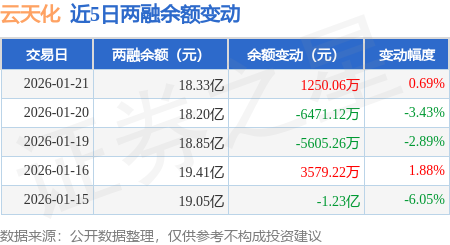 证券之星消息,1月21日,云天化(600096)融资买入1.85亿元,融资偿还1.73亿元,融资净买入1153.81万元,融资余额18.25亿元,近20个交易日中有11个交易日出现融资净买入。