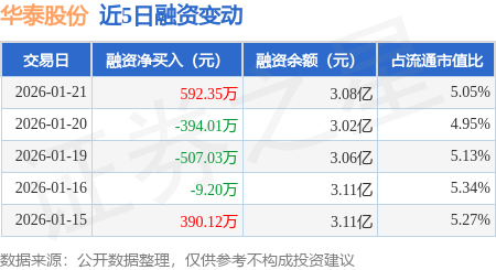 证券之星消息,1月21日,华泰股份(600308)融资买入1931.48万元,融资偿还1339.13万元,融资净买入592.35万元,融资余额3.08亿元,近20个交易日中有12个交易日出现融资净买入。
