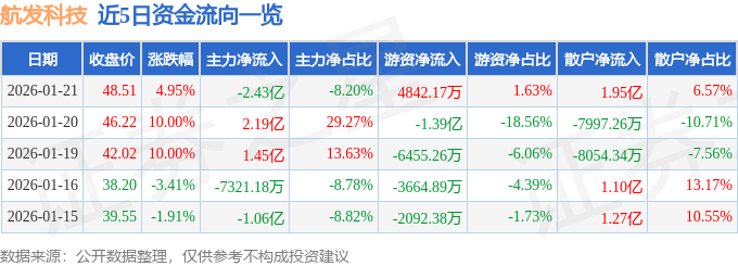 1月21日的资金流向数据方面,主力资金净流出2.43亿元,占总成交额8.2%,游资资金净流入4842.17万元,占总成交额1.63%,散户资金净流入1.95亿元,占总成交额6.57%。