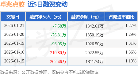 证券之星消息,1月21日,卓兆点胶(920026)融资买入40.73万元,融资偿还48.31万元,融资净卖出7.58万元,融资余额1842.61万元。