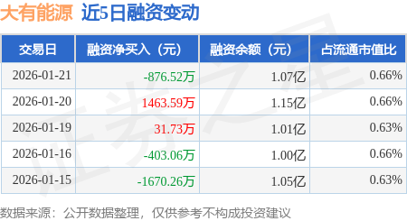 证券之星消息,1月21日,大有能源(600403)融资买入2912.73万元,融资偿还3789.25万元,融资净卖出876.52万元,融资余额1.07亿元,近20个交易日中有11个交易日出现融资净买入。