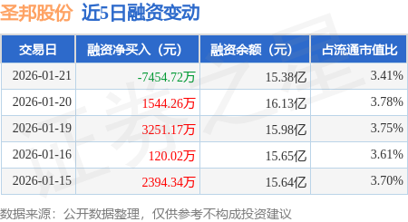 证券之星消息,1月21日,圣邦股份(300661)融资买入2.24亿元,融资偿还2.99亿元,融资净卖出7454.72万元,融资余额15.38亿元。