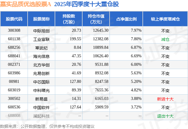 根据2025基金年报公募基金重仓股数据,重仓该股的公募基金共6家,其中持有数量最多的公募基金为嘉实基金的嘉实品质优选股票A。嘉实品质优选股票A目前规模为16.16亿元,最新净值0.793(1月21日),较上一交易日上涨3.46%,近一年上涨63.0%。该公募基金现任基金经理为李涛。李涛在任的基金产品包括:嘉实清洁能源股票发起式A,管理时间为2022年11月22日至今,期间收益率为19.32%;嘉实积极配置一年持有混合A,管理时间为2022年11月29日至今,期间收益率为47.45%;嘉实信息产业股票发起式A,管理时间为2022年12月16日至今,期间收益率为134.85%;