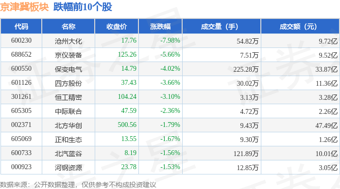 从资金流向上来看,当日京津冀板块主力资金净流入5.73亿元,游资资金净流出5.63亿元,散户资金净流出977.6万元。京津冀板块个股资金流向见下表:
