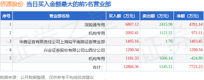 从龙虎榜公布的当日买卖数据来看,机构合计净买入546.3万元,北向资金合计净买入4391.14万元。炒股养家等知名游资榜上有名。(知名游资炒股养家一般指华鑫证券有限责任公司上海宛平南路证券营业部席位,根据市场资料整理,仅供参考)