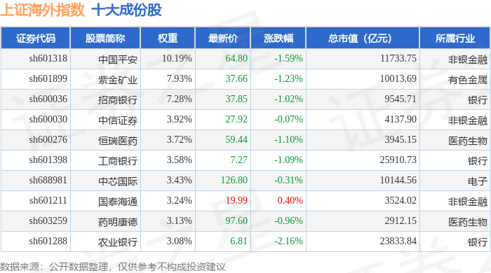 上证海外(000054)指数十大成份股详情如下:
