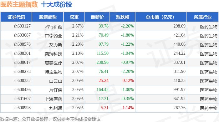 近10日内医药主题(000121)指数成份股做了调整,剔除了1只股票。