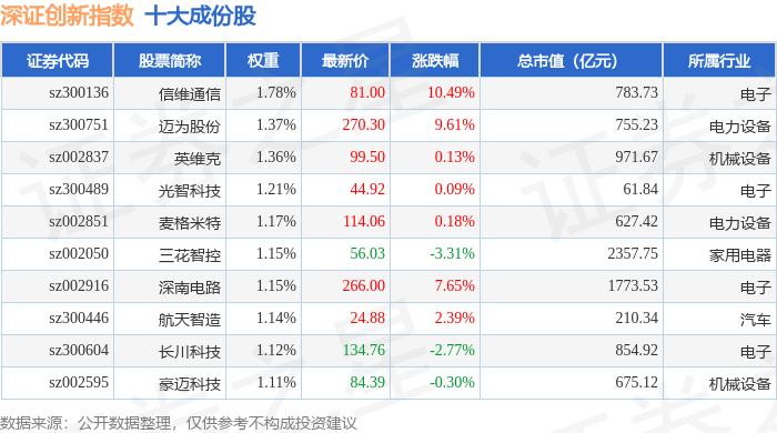 证券之星消息,1月22日,深证创新(399016)指数报收于6329.74点,涨0.26%,成交2269.88亿元,换手率2.79%。当日该指数成份股中,上涨的有40家,钢研高纳以12.98%的涨幅领涨,下跌的有60家,兴齐眼药以5.27%的跌幅领跌。