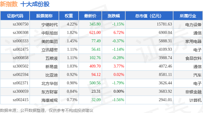 近10日内新指数(399100)成份股做了调整,新纳入了5只股票,剔除了1只股票。
