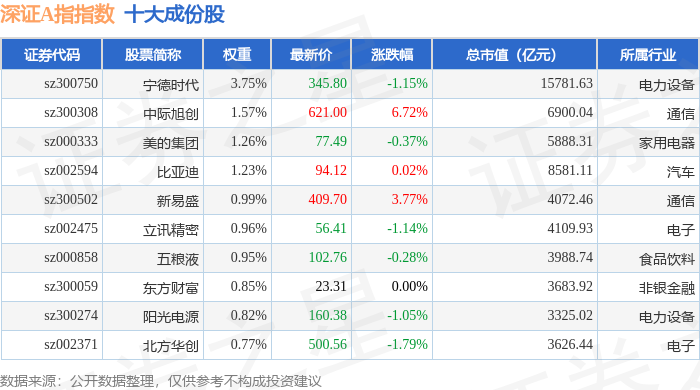 深证A指(399107)指数十大成份股详情如下: