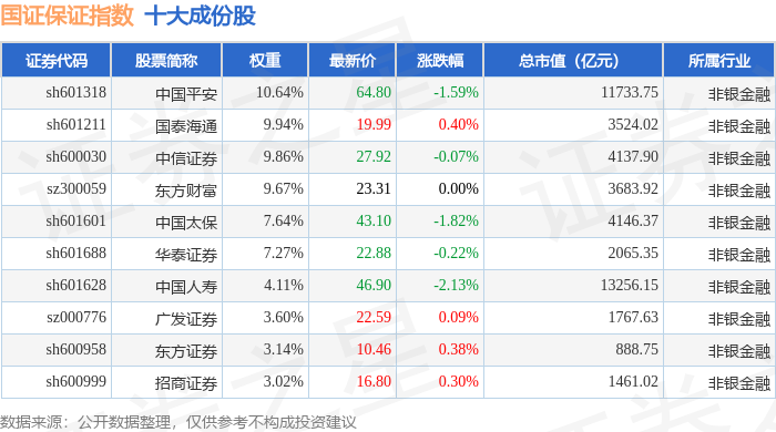 国证保证(399420)指数十大成份股详情如下: