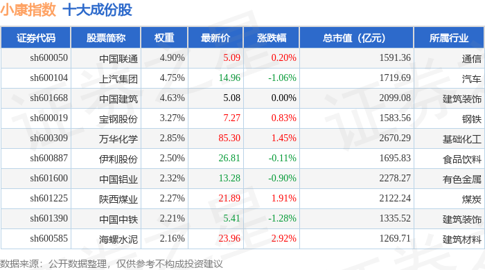 小康指数(399901)十大成份股详情如下: