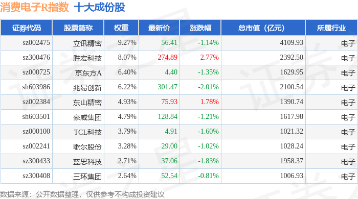 消费电子R(480030)指数十大成份股详情如下:
