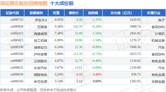 深证国企股东回报(970064)指数十大成份股详情如下:
