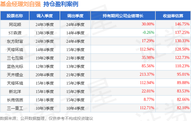 刘自强管理的华宝动力组合混合A基金在24年3季度买入同花顺,在持有1个季度后在24年4季度卖出。持有期间的估算收益率为146.75%,持有期间同花顺在2023年到2024年的年报归属净利润增幅达30%。