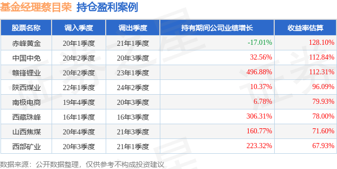 蔡目荣管理的华宝资源优选混合A基金在20年1季度买入赤峰黄金,在持有1年又0个季度后在21年1季度卖出。持有期间的估算收益率为128.1%,持有期间赤峰黄金在2020年到2021年的年报营业总收入降幅为17.01%。