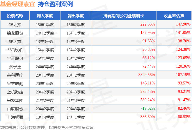 袁宜管理的富国宏观策略灵活配置混合A基金在15年1季度买入银之杰,在持有1个季度后在15年2季度卖出。持有期间的估算收益率为147.9%,持有期间银之杰在2014年到2015年的年报营业总收入增幅达222.53%。