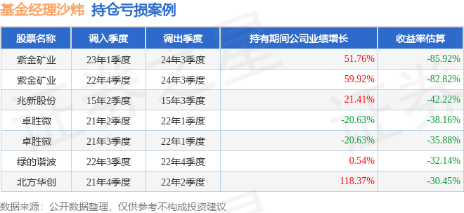 沙炜管理的博时丝路主题股票A基金在23年1季度买入紫金矿业,在持有1年又2个季度后在24年3季度卖出。持有期间的估算收益率为-85.92%,持有期间紫金矿业在2023年到2024年的年报归属净利润增幅达51.76%。