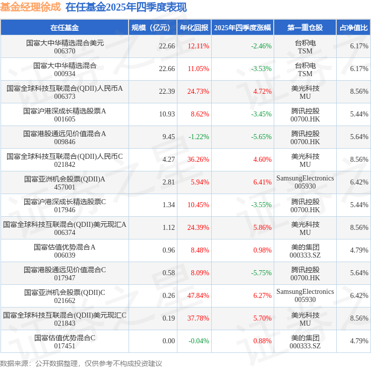 证券之星消息,截止2025年四季度末,基金经理徐成旗下共管理14只基金,本季度表现最佳的为国富亚洲机会股票(QDII)A(457001),季度净值涨6.41%。