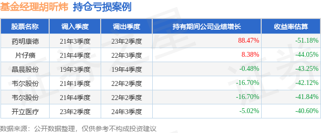 胡昕炜管理的汇添富价值创造定开混合基金在21年3季度买入药明康德,在持有1年又3个季度后在23年2季度卖出。持有期间的估算收益率为-51.18%,持有期间药明康德在2021年到2023年的年报归属净利润增幅达88.47%。