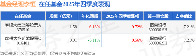 证券之星消息,截止2025年四季度末,基金经理李恒旗下共管理2只基金,本季度表现最佳的为摩根大盘蓝筹股票A(376510),季度净值涨9.72%。