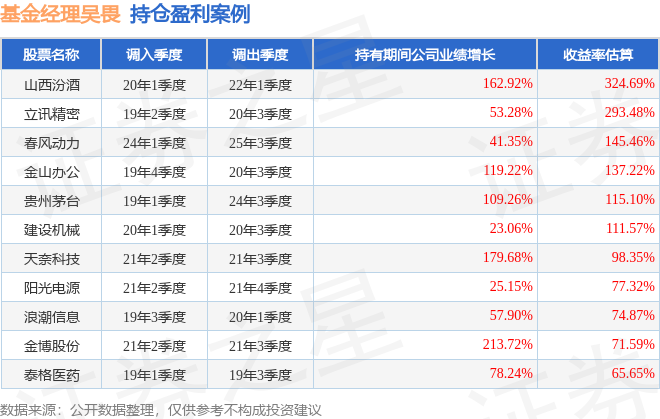 吴畏管理的富国价值驱动灵活配置混合A基金在20年1季度买入山西汾酒,在持有2年又0个季度后在22年1季度卖出。持有期间的估算收益率为324.69%,持有期间山西汾酒在2020年到2022年的年报归属净利润增幅达162.92%。
