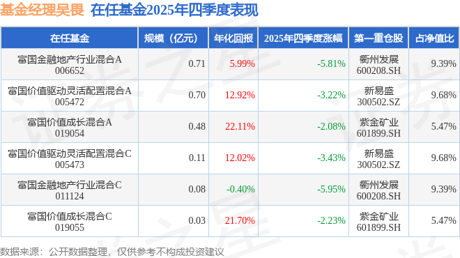 证券之星消息,截止2025年四季度末,基金经理吴畏旗下共管理6只基金,本季度表现最佳的为富国价值成长混合A(019054),季度净值跌2.08%。