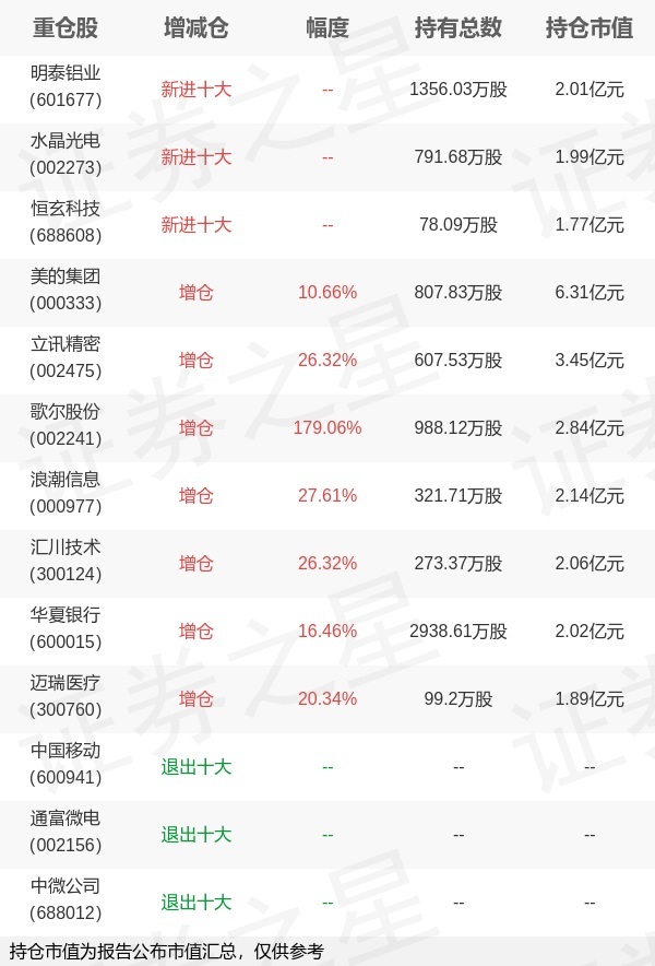 证券之星消息,1月22日兴业基金旗下周鸣 丁进管理的兴业收益增强债券型基金公布年报,近1年净值增长率9.82%。与上一季度相比,该基金前十大重仓股新增明泰铝业,水晶光电,恒玄科技;并对美的集团增仓77.83万股,为该基金第一大重仓股;中国移动,通富微电,中微公司等退出前十大重仓股;详细数据如下: