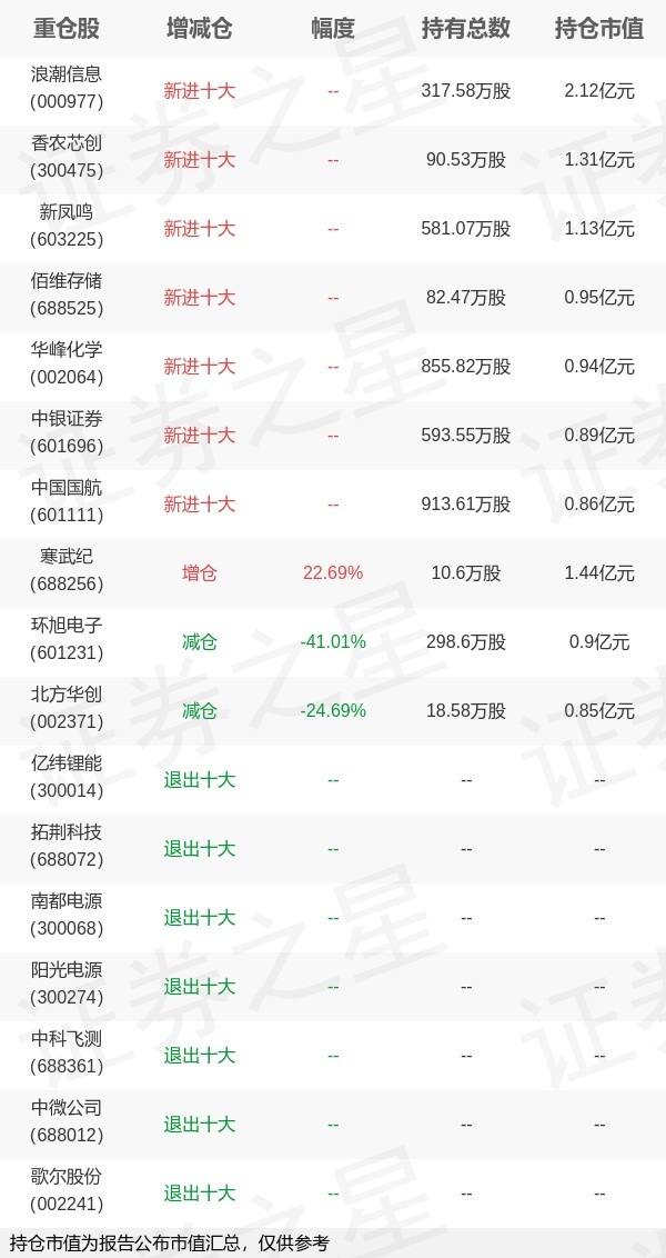 证券之星消息,1月22日华商基金旗下厉骞管理的华商信用增强债券型基金公布年报,近1年净值增长率26.86%。与上一季度相比,该基金前十大重仓股新增浪潮信息,香农芯创,新凤鸣,佰维存储,华峰化学,中银证券,中国国航;其中浪潮信息持仓占比1.16%,为该基金第一大重仓股;亿纬锂能,拓荆科技,南都电源,阳光电源,中科飞测,中微公司,歌尔股份等退出前十大重仓股;详细数据如下: