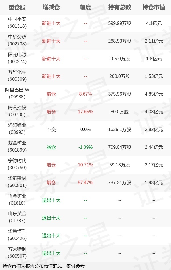 证券之星消息,1月22日中欧基金旗下华李成管理的中欧丰利债券型基金公布年报,近1年净值增长率9.43%。与上一季度相比,该基金前十大重仓股新增中国平安,中矿资源,阳光电源,万华化学;并对阿里巴巴-W增仓30.0万股,为该基金第一大重仓股;招金矿业,山东黄金,华鲁恒升,方大特钢等退出前十大重仓股;详细数据如下: