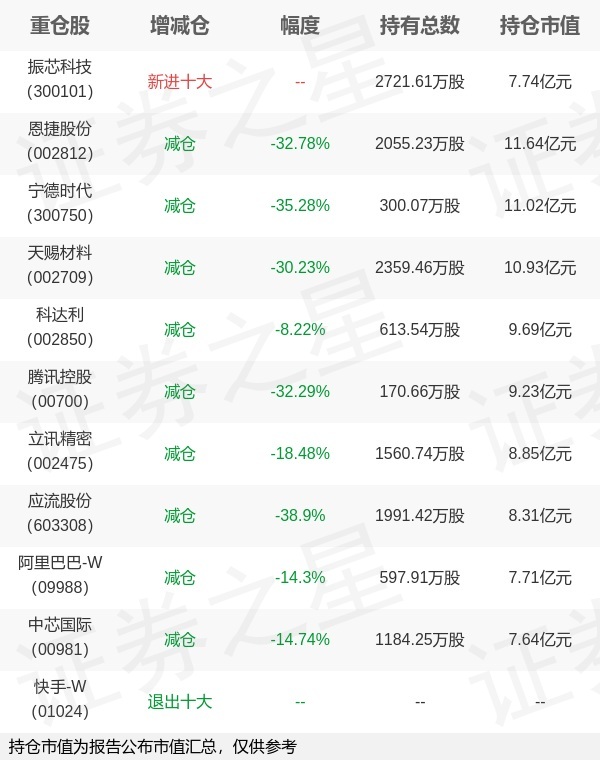 证券之星消息,1月22日泉果基金旗下赵诣管理的泉果旭源三年持有期混合型基金公布年报,近1年净值增长率49.62%。与上一季度相比,该基金前十大重仓股新增振芯科技;其中恩捷股份持仓占比9.17%,为该基金第一大重仓股;快手-W等退出前十大重仓股;详细数据如下: