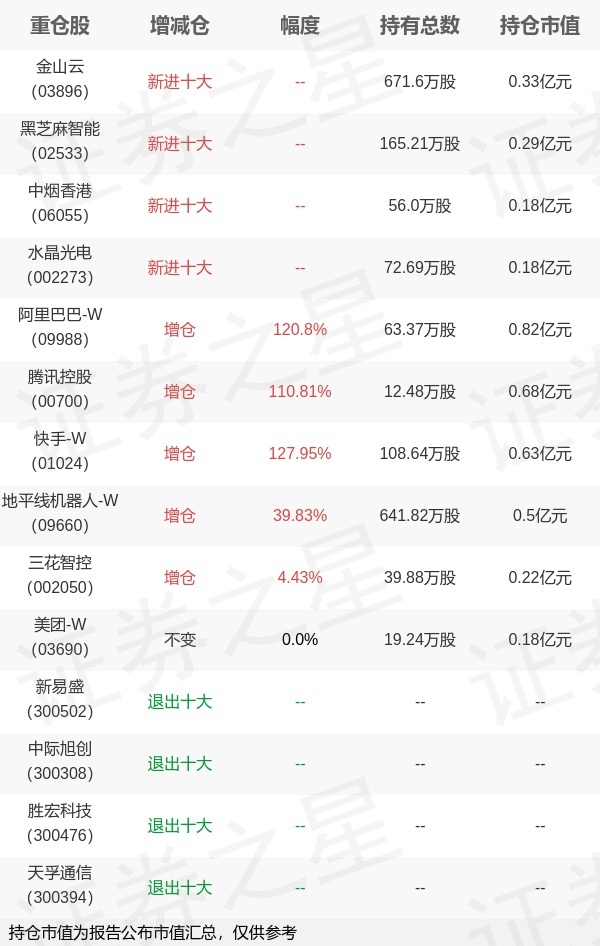 证券之星消息,1月22日华商基金旗下胡中原管理的华商安恒债券型基金公布年报,近1年净值增长率7.79%。与上一季度相比,该基金前十大重仓股新增金山云,黑芝麻智能,中烟香港,水晶光电;并对阿里巴巴-W增仓34.67万股,为该基金第一大重仓股;新易盛,中际旭创,胜宏科技,天孚通信等退出前十大重仓股;详细数据如下: