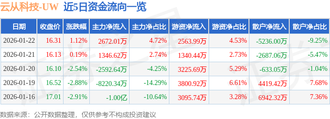 近5日资金流向一览见下表:
