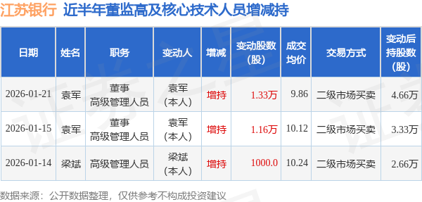 江苏银行近半年内的董监高及核心技术人员增减持详情如下: