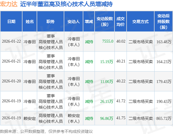 宏力达近半年内的董监高及核心技术人员增减持详情如下: