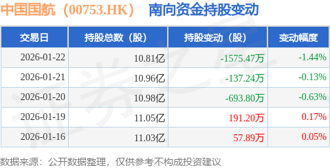 证券之星消息,1月22日南向资金减持1575.47万股中国国航(00753.HK)。近5个交易日中,获南向资金减持的有3天,累计净减持2157.43万股。近20个交易日中,获南向资金增持的有12天,累计净增持70.66万股。截至目前,南向资金持有中国国航(00753.HK)10.81亿股,占公司已发行普通股的21.79%。