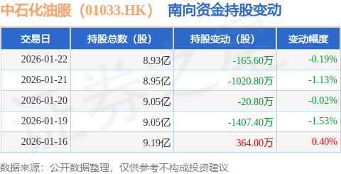 证券之星消息,1月22日南向资金减持165.6万股中石化油服(01033.HK)。近5个交易日中,获南向资金减持的有4天,累计净减持2250.6万股。近20个交易日中,获南向资金减持的有10天,累计净减持268.2万股。截至目前,南向资金持有中石化油服(01033.HK)8.93亿股,占公司已发行普通股的16.5%。