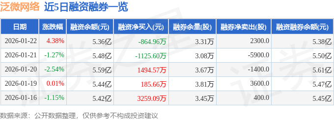 泛微网络融资融券信息显示,融资方面,当日融资买入2560.02万元,融资偿还3424.98万元,融资净偿还864.96万元。融券方面,融券卖出2900.0股,融券偿还600.0股,融券余量3.31万股,融券余额231.37万元。融资融券余额5.38亿元。
