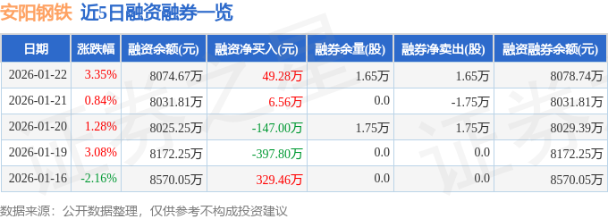 证券之星消息,截至2026年1月22日收盘,安阳钢铁(600569)报收于2.47元,上涨3.35%,换手率1.35%,成交量38.8万手,成交额9450.34万元。